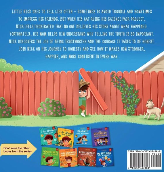 This inspiring kids' book about telling the truth follows Little Nick as he learns the consequences of telling even small lies. This engaging and highly relatable story offers a way to teach children about building trust and the importance of being honest. Little Nick doesn't think his little lies are a problem, so he continues to tell more of them through the story. But when something bigger happens and no one believes him, Nick learns the consequences of not telling the truth. He discovers the joy of being trustworthy and the courage it takes to be honest. Through the power of storytelling and beautiful illustrations, kids will learn: Honesty. Trust. Kindness. Empathy. Courage. Emotional Intelligence. This engaging children's book about lying uses a playful rhyming scheme that captures kids' attention, making it perfect for read-aloud time or early reading practice. With beautiful illustrations, this kids' book about honesty follows Little Nick as he navigates the consequences of lying. The colorful imagery in this picture book about child behavior brings the story to life, encouraging children to connect with the message and helping them better understand and remember the lessons. Focusing on key emotions, feelings, and morals, this social emotional book for kids weaves an important lesson about honesty into a relatable story. Whether used at home or in the classroom, this book on lying for kids provides a valuable tool for teaching children about truthfulness and integrity. Packed with teachable moments, like when Little Nick opens up about what it feels like to finally tell the truth, this kids' picture book helps children understand the importance of being honest. Get this book about honesty for children, perfect for preschool and early elementary ages, and start teaching the power of truthfulness today! Don't forget to explore the rest of the World of Emotions series for more stories that promote self-regulation, emotional growth, and essential social skills.