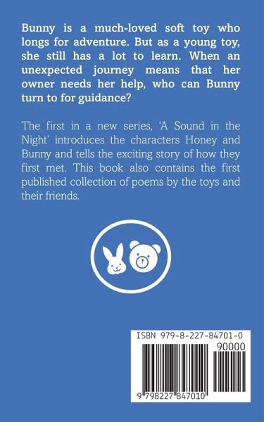 Bunny is a much-loved soft toy who longs for adventure. But as a young toy, she still has a lot to learn. When an unexpected journey means that her owner needs her help, who can Bunny turn to for guidance? The first in a new series, 'A Sound in the Night' introduces the characters Honey and Bunny and tells the exciting story of how they first met. This book also contains the first published collection of poems by the toys and their friends. Full of fun and imagination, Honey & Bunny adventures make for perfect bedtime stories for primary aged childres.