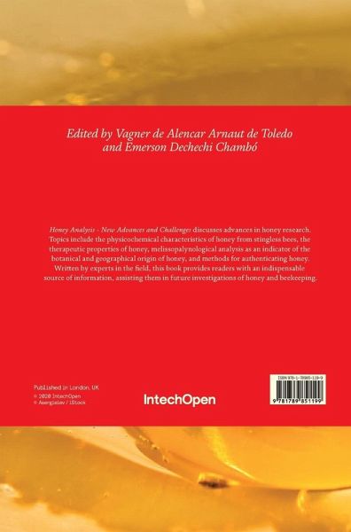 Honey Analysis - New Advances and Challenges discusses advances in honey research. Topics include the physicochemical characteristics of honey from stingless bees, the therapeutic properties of honey, melissopalynological analysis as an indicator of the botanical and geographical origin of honey, and methods for authenticating honey. Written by experts in the field, this book provides readers with an indispensable source of information, assisting them in future investigations of honey and beekeeping.
