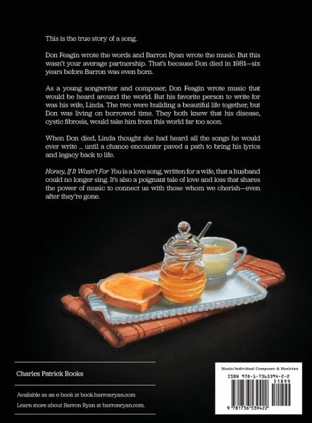This is the true story of a song. Don Feagin wrote the words and Barron Ryan wrote the music. But this wasn't your average partnership. That's because Don died in 1981-six years before Barron was even born. As a young songwriter and composer, Don Feagin wrote music that would be heard around the world. But his favorite person to write for was his wife, Linda. The two were building a beautiful life together, but Don was living on borrowed time. They both knew that his disease, cystic fibrosis, would take him from this world far too soon. When Don died, Linda thought she had heard all the songs he would ever write ... until a chance encounter paved a path to bring his lyrics and legacy back to life. Honey, If It Wasn't For You is a love song, written for a wife, that a husband could no longer sing. It's also a poignant tale of love and loss that shares the power of music to connect us with those whom we cherish-even after they're gone.
