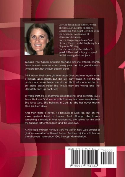 Imagine your typical Christian teenage girl: she attends church twice a week, summer camp every year, and has grandparents who preach, but she just doesn't get it. Think about that same girl who hears over again what is morally acceptable. Her friends party, date, even sleep around, and that's all she wants to do. But deep down inside she knows they are wrong and she ultimately ends up confused. In walks Brett. He is charming, good looking, and definitely loves Jesus. He loves God in a way that Honey has never seen before. And then there is Trevor. He believes in God too, but the same way as Honey. As we read through Honey's story we watch how God unfolds a glorious revelation of Himself to her. And we rejoice with her as she discovers more about God through His revelation. It's a beautiful story of life and love the way a simple teenage girl tells it, and not only do we applaud God as He helps her through each struggle, we rejoice with her on her way towards her own personal victory.