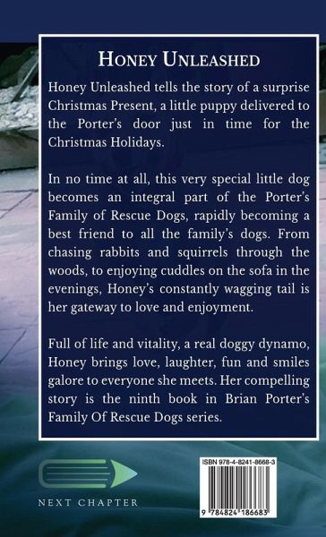 Honey Unleashed tells the story of a surprise Christmas Present, a little puppy delivered to the Porter's door just in time for the Christmas Holidays. In no time at all, this very special little dog becomes an integral part of the Porter's Family of Rescue Dogs, rapidly becoming a best friend to all the family's dogs. From chasing rabbits and squirrels through the woods, to enjoying cuddles on the sofa in the evenings, Honey's constantly wagging tail is her gateway to love and enjoyment. Full of life and vitality, a real doggy dynamo, Honey brings love, laughter, fun and smiles galore to everyone she meets. Her compelling story is the ninth book in Brian Porter's Family Of Rescue Dogs series.