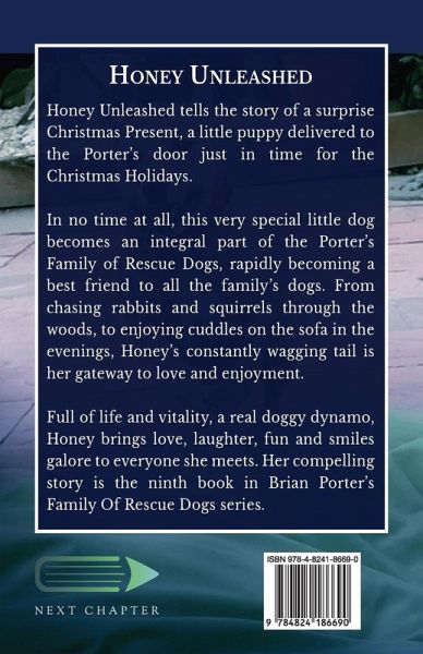 Honey Unleashed tells the story of a surprise Christmas Present, a little puppy delivered to the Porter's door just in time for the Christmas Holidays. In no time at all, this very special little dog becomes an integral part of the Porter's Family of Rescue Dogs, rapidly becoming a best friend to all the family's dogs. From chasing rabbits and squirrels through the woods, to enjoying cuddles on the sofa in the evenings, Honey's constantly wagging tail is her gateway to love and enjoyment. Full of life and vitality, a real doggy dynamo, Honey brings love, laughter, fun and smiles galore to everyone she meets. Her compelling story is the ninth book in Brian Porter's Family Of Rescue Dogs series.