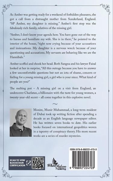 The book is about the disappearance of a British girl from London visiting her relatives in Lahore, Pakistan. But at a deeper level, the book highlights abuse of child servants, making of a prostitute, a maid's plight as a sex slave and the lifestyle of the super-rich in Pakistan; a country where over 40% of people are below the poverty line. The book also confronts basic issues like the apathy of the police when it comes to investigating crimes not to mention the overbearing influence of the rich and the powerful to either not investigate or to do so with kid gloves. As well as, a commentary on the reputation of Punjab police. It is a melting pot - A missing girl on a visit from England, an undercover Charlatan, a billionaire with the taste for young women and a twenty odd year secret all come together in this explosive novel.