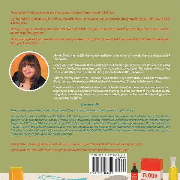 A Children's Picture Book About Diversity and Acceptance Literary Titan Gold Winning Book Studies show that supporting diversity in early childhood books is a two-pronged process: helping children to feel good about themselves, their families, and their communities, and also exposing children to differences, things that are unfamiliar, and experiences beyond their immediate lives. Research suggests adults who read books with diverse characters to their children will increase awareness, appreciation, and inclusion of diverse cultures. WE WANT ALL KIDS TO SEE THEMSELVES REPRESENTED Honeycake: A Family of Spices, the first book in Medea's Honeycake series, introduces readers to a diverse, multi-cultural family that is full of love. A grandmother explains why she calls her grandchildren "honeycakes" while she teaches her granddaughter, Nala, how to bake a honey cake. Through imagination, the grandmother details how each delicious ingredient represents a different family member and his or her unique ethnic background. This charming book also includes a recipe and step-by-step instructions on how to bake your own delicious batch of honey cake with your Honeycakes! The Honeycake Series is a glimmer of HOPE and POSITIVITY, which will not only entertain, but it will educate, empower and enlighten children and their families for generations to come. The valuable lesson that readers can expect from the first book in the Honeycake series is a strong message about diversity and acceptance. Caregivers can teach their children that, "even though we look different and come from different places, we are all part of one race...THE HUMAN RACE. In this beautiful world, we live in, WE ARE ALL ONE." Readers give this book and series a 5.0 out of 5 stars! "What an amazing book. My daughter is 8 and was delighted to read this book without hesitation. Sends such a beautiful message and discusses diversity. We then followed the recipe in the back of the book and created our own delicious honeycake! Can't wait to order the rest of the series!" "A Delicious Lesson in Diversity! "The entire premise of this book has me smiling from ear to ear. Kalantar artfully teaches not only acceptance of diversity, but the celebration of it. And what a delicious way to go about it! The metaphor of spices as people is inspired. Each of us has a unique contribution to our human family and our world. This is a great lesson for children and adults alike!" "This book is a sweet story about a loving grandmother and her granddaughter. I enjoyed seeing a children's book with a family that has multiple cultures in it. It reflected my reality growing up and currently in my marriage. My teen son wanted to take a book and volunteer to read to kids in a lower grade. A Kindergarten class enjoyed reading time, listening to this story!" It's the perfect gift for all teachers and children, preschool through grade 3. It helps caregivers and educators start an age-appropriate conversation about diversity by reflecting on what spices they are made up from that makes them unique-just like a honey cake.