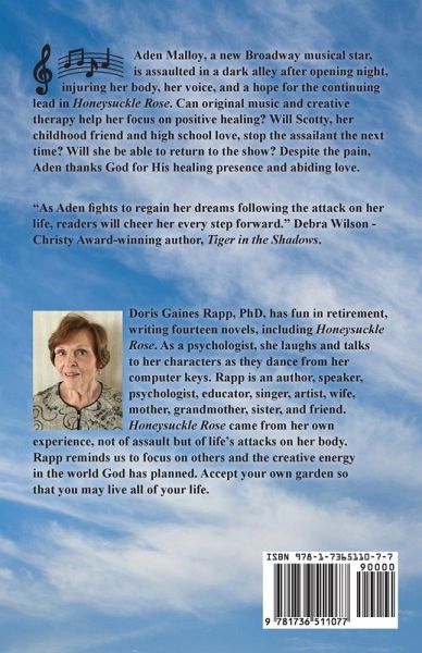 After all the curtain calls and the audience's uproarious cheers, Aden Malloy, a new Broadway musical star, is attacked in an alley after opening night. Left broken and crumbled among the hard bricks and cold stones just outside the theater's stage door, she wanders through the alley like a spirit, caught between her injured body, her lost voice and lofty dreams, and the gate to Glory. Without telling Aden, Grandma Malloy plants pots of flowers on Aden's apartment terrace, gardening therapy for relaxation and hope. Aden hates the space, the garden in the sky. The blossoms represent change and all she has lost. She must make peace with her body and her physical limitations, and find alternative therapies to stay positive. Healing begins when her high school boyfriend, Scott Russel, comes for a Thanksgiving visit. But will Aden be able to return to her beloved musical, Honeysuckle Rose, unable to sing? Will Scott be there to stop Aden's assailant the next time he stalks her, ready for a second attack? Will Christian personal growth be the key to overcoming her crippling grief over what she has lost? If she accepts the garden, is that giving up, or giving in to God's new plan?