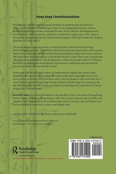 Hong Kong is widely regarded as an exemplar of authoritarian jurisdictions with a positive history of adhering to Rule of Law-shaped governance systems. British Hong Kong provides a remarkable story of the effective development and consolidation of such a system, which has continued to apply since 1997, when it became the Hong Kong Special Administrative Region (HKSAR) within the People's Republic of China (PRC). This book adopts a fresh approach in examining the evolution of Hong Kong's political-legal experience. It establishes that these prominent governance achievements were built on particular British constitutional foundations forged over many centuries. The work shows how the analysis of the British theorist Albert Dicey and, in particular, "Diceyan Constitutionalism" was fundamental, within the pivotal context of "Chinese Familism", in shaping the development of governance institutions and operational procedures within the new British Colony. It discusses how Hong Kong's system of Authoritarian Legality has come to pass. Exploring the essence of that system, the study probes how thoroughly it has been stress-tested, not least in 2019, and how well it may be placed to cope with tests yet to come. It also analyzes Hong Kong-Beijing relations and the long-term prospects for the HKSAR within the PRC based on a balanced contemporary assessment of China's exceptional One Party State.