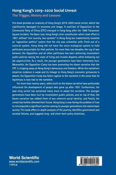 This book provides an anatomy of Hong Kong's 2019–2020 social unrest, which has significantly damaged its economy and image. A coalition of Opposition to the Communist Party of China (CPC) emerged in Hong Kong after the 1989 Tiananmen Square Incident. Hong Kong's mini-constitution, the Basic Law, which became effective in 1997, defines "one country, two systems" in Hong Kong but inadvertently installed an "opposition politics" system that the city was unfamiliar with. Freshly out of a colonial system, Hong Kong did not have the socio-ecological system to hold politicians accountable for their policies. For decades, the tug of war between the Opposition and all other politicians delivered incoherent public policies that raised the costs of living and income disparity, while hollowing out economic opportunities in the middle that particularly hurt the younger generations. Meanwhile, the Opposition camp promotes the blame narrative that the CPC is chipping away at Hong Kong's democracy and freedom. While the narrative's empirical evidence is weak and its linkage to Hong Kong's economic grievances is absent, the Opposition camp propagates the narrative relentlessly. Ironically, the Opposition Camp has fallen captive to the narrative in the sense that its legitimacy is now tied with the narrative. Two decades of rallies grounded on the blame narrative have profoundly influenced the development of people who grew up after 1997. Furthermore, the year-long unrest has socialized many more to adopt the narrative. The younger generations are hurt first by inconsistent public policies, and on top of that, the blame narrative that robs them of any coherent social identity; and finally, the unrest further dims their future. Hong Kong now faces the problem of how to re-incorporate a significant portion among its younger generations into mainstream society. This book offers in-depth analyses of the journey, identifies government and societal failures, and suggests long- and short-term policy directions.