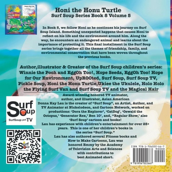 In Book 5, we follow Honi as he continues his journey on Surf Soup Island. Something unexpected happens that causes Honi to reflect on his life and the environment around him. Along the way, he encounters an endangered animal and learns about the importance of protecting it. This final installment in the Surf Soup series brings together all the themes of friendship, family, and environmental conservation that have been woven throughout the previous books.Here are some lessons and morals that can be learned from Honi the honu:Understanding different perspectives: Honi doesn't want to celebrate holidays anymore, and it's important to understand that people may have different reasons for feeling the way they do. This story can teach readers to be more empathetic towards others and to try to see things from their point of view.Protecting endangered species: Honi's story also touches upon the topic of endangered species and the importance of protecting them. Readers can learn about the dangers that sea turtles face and what they can do to help protect them.The red thread of fate: This concept from Chinese mythology is introduced in the story and can teach readers about the idea that certain people are connected in a special way, and that fate brings them together for a reason.The power of friendship and family: Honi learns that he has friends who care about him and want to help him through his difficulties. This can teach readers the importance of having a support system and being there for their loved ones in times of need.Appreciating the world around us: The story takes place on Surf Soup island and celebrates the beauty and wonder of ocean life. Readers can learn to appreciate the natural world and the importance of protecting it.Overall, the story of Honi the honu teaches lessons about empathy, environmentalism, friendship, and appreciating the world around us.
