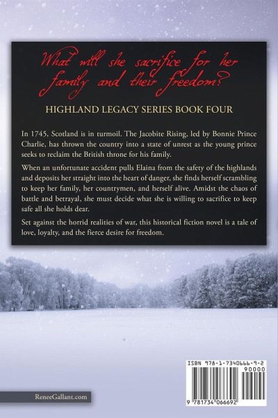 No peace without war. No love without sorrow. In 1745, Scotland is in turmoil. The Jacobite Rising, led by Bonnie Prince Charlie, has thrown the country into a state of unrest as the young prince seeks to reclaim the British throne for his family. When an unfortunate accident pulls Elaina from the safety of the highlands and deposits her straight into the heart of danger, she finds herself scrambling to keep her family, her countrymen, and herself alive. Amidst the chaos of battle and betrayal, she must decide what she is willing to sacrifice to keep safe all she holds dear. Set against the horrid realities of war, this historical fiction novel is a tale of love, loyalty, and the fierce desire for freedom.