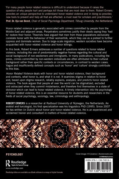 Honor related violence is generally associated with crimes committed by people from the Middle East and adjacent areas. Perpetrators sometimes justify their deeds saying they 'had to' restore their honor. Theorists have argued that men from these populations exclusively correlate honor with the behaviour of their womenfolk, which they use as a pretext to further oppress and dominate women. Due to large-scale migration, western societies have become acquainted with honor related violence and honor killings. In this book, Robert Ermers addresses a number of questions related to honor related violence, including the use of predominantly negative frames regarding the cultural and social background of non-westerners and immigrants. In many publications, including the press, crimes committed by non-western individuals are often attributed to their cultural background rather than specific contexts or circumstances, in contrast to western cases. Vague and insufficiently defined concepts such as 'honor' and 'culture' strongly contribute to this bias. Honor Related Violence deals with honor and honor related violence, their background and contexts, what honor is, and what it is not. It examines stigma in relation to honor and based upon stigma research, reliably explains, analyses, and predicts honor related violence. The book argues that people all over the world can be stigmatized, excluded and ostracized when they commit misbehavior, and therefore find themselves in a state of dishonor which can lead to honor related violence. A timely intervention into the psychology of honor related violence, this is an essential resource for students and researchers in the fields of social psychology, sociology, law, criminology and anthropology.