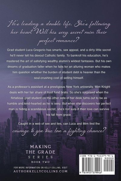 He's leading a double life. She's following her heart. Will his sexy secret ruin their perfect romance? Grad student Luca Gregorio has smarts, sex appeal, and a dirty little secret he'll never tell his devout Catholic family. To bankroll his education, he's mastered the art of satisfying wealthy alumni's wildest fantasies. But his own dreams of graduation falter when he falls for an alluring woman who makes him question whether the burden of student debt is heavier than the soul-crushing cost of selling himself. As a professor's assistant at a prestigious New York university, Mim Knight deals with her fair share of trust fund brats. So she's surprised when the flirtatious grad student on the other side of her desk turns out to be as humble and kind-hearted as he is sexy. But when she discovers her perfect man is hiding a scandalous secret, she's not sure if their love can survive his fall from grace. Caught in a web of sex and lies, can Luca and Mim find the courage to give true love a fighting chance?