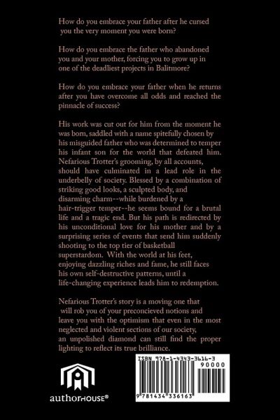 How do you embrace your father after he cursed you the very moment you were born? How do you embrace the father who abandoned you and your mother, forcing you to grow up in one of the deadliest projects in Balitmore? How do you embrace your father when he returns after you have overcome all odds and reached the pinnacle of success? His work was cut out for him from the moment he was born, saddled with a name spitefully chosen by his misguided father who was determined to temper his infant son for the world that defeated him. Nefarious Trotter's grooming, by all accounts, should have culminated in a lead role in the underbelly of society. Blessed by a combination of striking good looks, a sculpted body, and disarming charm--while burdened by a hair-trigger temper--he seems bound for a brutal life and a tragic end. But his path is redirected by his unconditional love for his mother and by a surprising series of events that send him suddenly shooting to the top tier of basketball superstardom. With the world at his feet, enjoying dazzling riches and fame, he still faces his own self-destructive patterns, until a life-changing experience leads him to redemption. Nefarious Trotter's story is a moving one that will rob you of your preconcieved notions and leave you with the optimism that even in the most neglected and violent sections of our society, an unpolished diamond can still find the proper lighting to reflect its true brilliance.