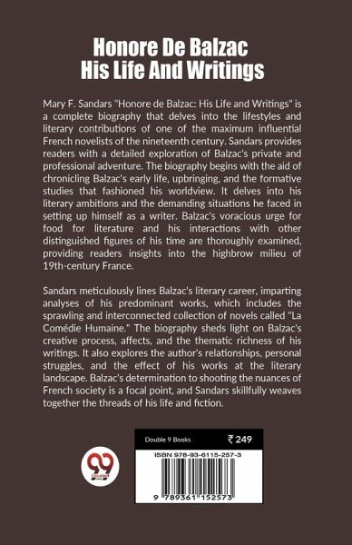 Mary F. Sandars "Honore de Balzac: His Life and Writings" is a complete biography that delves into the lifestyles and literary contributions of one of the maximum influential French novelists of the nineteenth century. Sandars provides readers with a detailed exploration of Balzac's private and professional adventure. The biography begins with the aid of chronicling Balzac's early life, upbringing, and the formative studies that fashioned his worldview. It delves into his literary ambitions and the demanding situations he faced in setting up himself as a writer. Balzac's voracious urge for food for literature and his interactions with other distinguished figures of his time are thoroughly examined, providing readers insights into the highbrow milieu of 19th-century France. Sandars meticulously lines Balzac's literary career, imparting analyses of his predominant works, which includes the sprawling and interconnected collection of novels called "La Comédie Humaine." The biography sheds light on Balzac's creative process, affects, and the thematic richness of his writings. It also explores the author's relationships, personal struggles, and the effect of his works at the literary landscape. Balzac's determination to shooting the nuances of French society is a focal point, and Sandars skillfully weaves together the threads of his life and fiction.