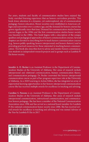 For years, students and faculty of communication studies have enjoyed the lively, enriched learning experience that an honors curriculum provides. This book draws attention to a dynamic, yet underexplored, site of communication pedagogy: honors education. Honor societies were established in American colleges and universities over a century ago, and the demand for honors courses has grown significantly since that time. Demand for communication studies honors courses began in the 1950s and the first communication studies honor society was founded in the 1980s. This book begins with a description of the unique qualities and pedagogical approaches of honors communication courses. Several chapters are devoted to describing how to teach honors communication courses (e.g., honors public speaking, honors interpersonal, and honors rhetoric) and to providing practical resources for those interested in teaching honors communication. This book also describes how to advise and mentor honors communication students in independent research projects and in groups such as Lambda Pi Eta honor society.