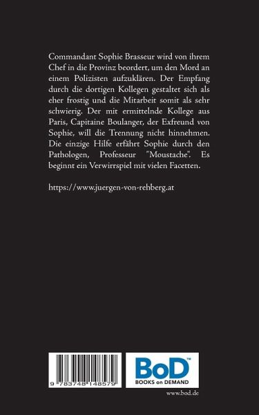 Commandant Sophie Brasseur wird von ihrem Chef in die Provinz beordert, um den Mord an einem Polizisten aufzuklären. Der Empfang durch die dortigen Kollegen gestaltet sich als eher frostig und die Mitarbeit somit als sehr schwierig. Der mitermittelnde Kollege aus Paris, Capitaine Boulanger, der Exfreund von Sophie, will die Trennung nicht hinnehmen. Die einzige Hilfe erfährt Sophie durch den Pathologen, Professeur "Moustache". Es beginnt ein Verwirrspiel mit vielen Facetten.