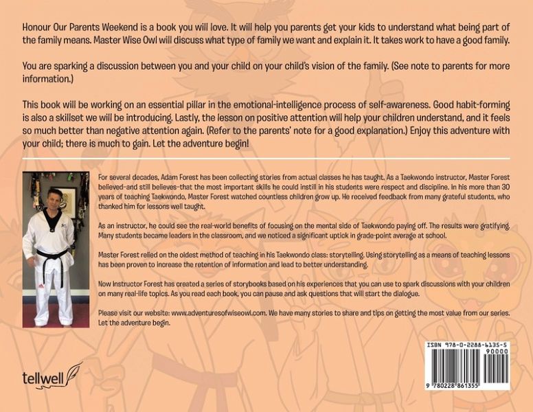 Honour Our Parents Weekend is a book you will love. It will help you parents get your kids to understand what being part of the family means. Master Wise Owl will discuss what type of family we want and explain it. It takes work to have a good family. You are sparking a discussion between you and your child on your child's vision of the family. (See note to parents for more information.) This book will be working on an essential pillar in the emotional-intelligence process of self-awareness. Good habit-forming is also a skillset we will be introducing. Lastly, the lesson on positive attention will help your children understand, and it feels so much better than negative attention again. (Refer to the parents' note for a good explanation.) Enjoy this adventure with your child; there is much to gain. Let the adventure begin!