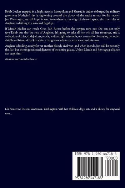 Robb Locke's trapped in a high-security Panoptikon and Sharud is under embargo, the military governeur Notheim's fist is tightening around the throat of the entire system for his master Jun Planetagen, and all hope is lost. Somewhere at the edge of charted space, the true ruler of Anglene is drifting in a wrecked flagship. If Marah Madán can reach Gran Parl Riccar before the oxygen runs out, she can not only save Robb but also the rest of Anglene. It's going to take all her wit, all her resources, and a collection of spies, codejackers, rebels, and outright criminals, not to mention betraying her other childhood friend-Ged Gizabón, a dangerous adversary with secrets of his own. Anglene is boiling, ready for yet another bloody civil war-and when it ends, Jun will be not only the Parl but the unquestioned dictator of the entire galaxy. Unless Marah and her ragtag alliance can stop him. No hero ever stands alone...
