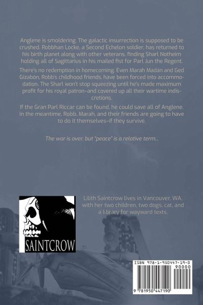 Anglene is smoldering. The galactic insurrection is supposed to be crushed. Robbhan Locke, a Second Echelon soldier, has returned to his birth planet along with other veterans, finding Sharl Notheim holding all of Sagittarius in his mailed fist for Parl Jun the Regent. There's no redemption in homecoming. Even Marah Madán and Ged Gizabón, Robb's childhood friends, have been forced into accommodation. The Sharl won't stop squeezing until he's made maximum profit for his royal patron-and covered up all their wartime indiscretions. If the Gran Parl Riccar can be found, he could save all of Anglene. In the meantime, Robb, Marah, and their friends are going to have to do it themselves. If they survive. The war is over, but "peace" is a relative term...