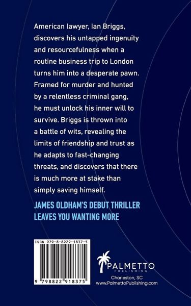 JAMES OLDHAM'S DEBUT THRILLER LEAVES YOU WANTING MORE. American lawyer, Ian Briggs, discovers his untapped ingenuity and resourcefulness when a routine business trip to London turns him into a desperate pawn. Framed for murder and hunted by a relentless criminal gang, he must unlock his inner will to survive. Briggs is thrown into a battle of wits, revealing the limits of friendship and trust as he adapts to fast-changing threats, and discovers that there is much more at stake than simply saving himself.