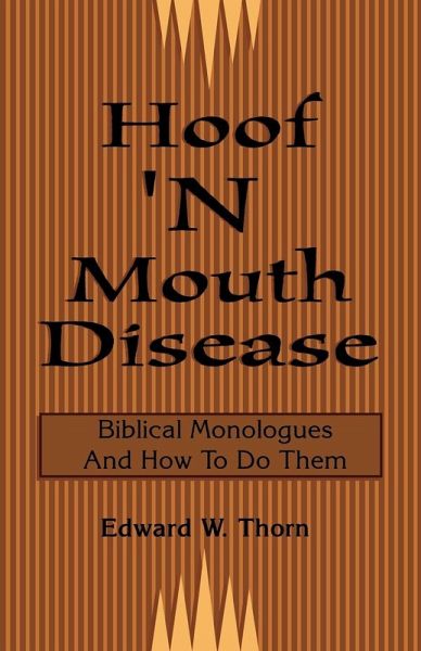... Edward Thorn has written an excellent manual... His sermons blend well the horizons of the Bible and the contemporary culture scape. Even pastors who never try a monologue sermon will enjoy reading this book and be enriched by the monologues. (from the Foreword by Dr. Raymond Bailey, former faculty member, Southern Baptist Theological Seminary, Louisville, Kentucky) The preacher who faces weekly the difficult task of speaking to a congregation is invariably in quest of help, and not only the kind to be sought in prayer. He or she is likely to have more than passing interest in the hermeneutical issues and to appreciate whatever springs of fresh water might well up from the sources of inspiration. The work of Dr. Ed Thorn, Hoof 'N Mouth Disease, speaks exactly to the situation of the preacher with helpful insight into the task and some very concrete instances of how to do so creatively and interestingly... Dr. Thorn is well read in communication theory and has experimented successfully with narrative preaching... in which the preacher assumes a character from the Bible and imaginatively speaks from that perspective. The book gives abundant samples of the approach, along with some models of how to incorporate the process into more traditional sermon structures as well. These monologue sermons contain much that is both bold and provocative, humorous and stirring. Walter P. Weaver Chairman, Humanities Division Florida Southern College In a day when the laity are anxious to hear the biblical story and pastors are searching for creative ways to share the biblical story comes this delightful book of biblical monologues, Hoof 'N Mouth Disease, by Ed Thorn. It is classic. David L. Brazelton Superintendent, Tampa District United Methodist Church Edward William Thorn, Ph.D., graduated from Crozer Theological Seminary and was ordained in the United Methodist Church. He served as pastor in the Southern New Jersey and Eastern Ohio conferences. While a pastor in Ohio he earned the M.A. degree in speech from Akron University. He taught speech at Chicago City College and later earned a Ph.D. in Rhetoric from Indiana University. Dr. Thorn taught at Indiana University from 1970 to 1973. Subsequently he taught in the Mass Communications department at Florida Southern College for twenty years. Since retirement in 1993 he has been the pastor of churches in Brooksville, Perry, and Plant City, Florida.