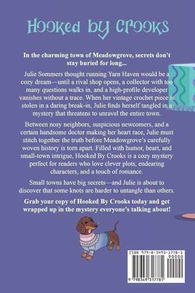In the charming town of Meadowgrove, secrets don't stay buried for long... Julie Sommers thought running Yarn Haven would be a cozy dream-until a rival shop opens, a collector with too many questions walks in, and a high-profile developer vanishes without a trace. When her vintage crochet piece is stolen in a daring break-in, Julie finds herself tangled in a mystery that threatens to unravel the entire town. Between nosy neighbors, suspicious newcomers, and a certain handsome doctor making her heart race, Julie must stitch together the truth before Meadowgrove's carefully woven history is torn apart. Filled with humor, heart, and small-town intrigue, Hooked By Crooks is a cozy mystery perfect for readers who love clever plots, endearing characters, and a touch of romance. Small towns have big secrets-and Julie is about to discover that some knots are harder to untangle than others. Grab your copy of Hooked By Crooks today and get wrapped up in the mystery everyone's talking about!