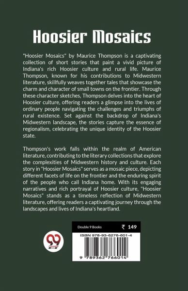 "Hoosier Mosaics" by Maurice Thompson is a captivating collection of short stories that paint a vivid picture of Indiana's rich Hoosier culture and rural life. Maurice Thompson, known for his contributions to Midwestern literature, skillfully weaves together tales that showcase the charm and character of small towns on the frontier. Through these character sketches, Thompson delves into the heart of Hoosier culture, offering readers a glimpse into the lives of ordinary people navigating the challenges and triumphs of rural existence. Set against the backdrop of Indiana's Midwestern landscape, the stories capture the essence of regionalism, celebrating the unique identity of the Hoosier state. Thompson's work falls within the realm of American literature, contributing to the literary collections that explore the complexities of Midwestern history and culture. Each story in "Hoosier Mosaics" serves as a mosaic piece, depicting different facets of life on the frontier and the enduring spirit of the people who call Indiana home. With its engaging narratives and rich portrayal of Hoosier culture, "Hoosier Mosaics" stands as a timeless reflection of Midwestern literature, offering readers a captivating journey through the landscapes and lives of Indiana's heartland.