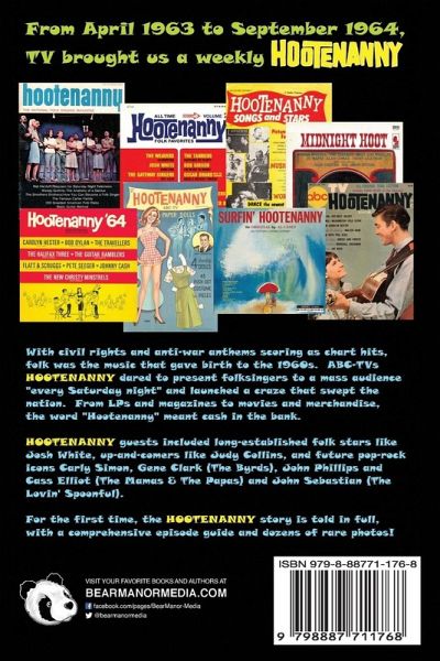 With civil rights and anti-war anthems scoring as chart hits, folk was the music that gave birth to the 1960s. ABC-TVs HOOTENANNY dared to present folksingers to a mass audience "every Saturday night" and launched a craze that swept the nation. From LPs and magazines to movies and merchandise, the word "Hootenanny" meant cash in the bank. HOOTENANNY guests included long-established folk stars like Josh White, up-and-comers like Judy Collins, and future pop-rock icons Carly Simon, Gene Clark (The Byrds), John Phillips and Cass Elliot (The Mamas & The Papas) and John Sebastian (The Lovin' Spoonful). For the first time, the HOOTENANNY story is told in full, with a comprehensive episode guide and dozens of rare photos!