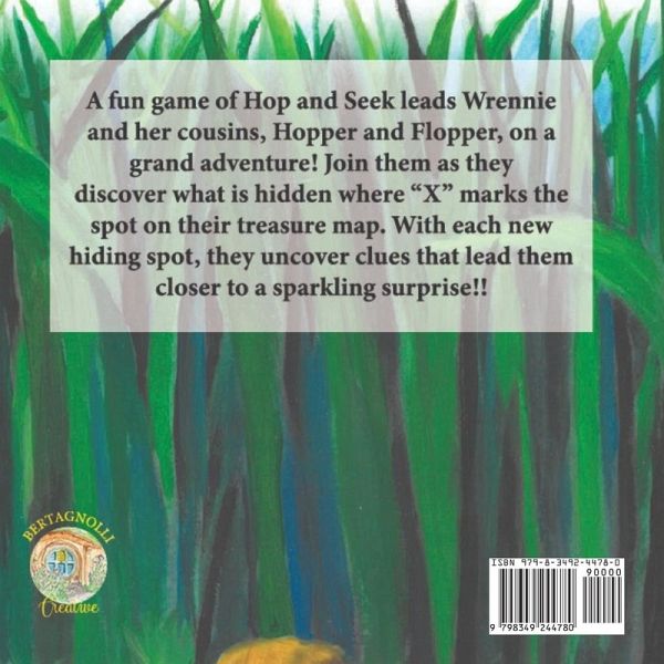 A fun game of Hop and Seek leads Wrennie and her cousins, Hopper and Flopper, on a grand adventure! Join them as they discover what is hidden where X marks the spot on their treasure map. With each new hiding spot, they uncover clues that lead them closer to a sparkling surprise!!
