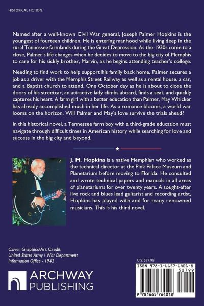 Named after a well-known Civil War general, Joseph Palmer Hopkins is the youngest of fourteen children. He is entering manhood while living deep in the rural Tennessee farmlands during the Great Depression. As the 1930s come to a close, Palmer's life changes when he decides to move to the big city of Memphis to care for his sickly brother, Marvin, as he begins attending teacher's college. Needing to find work to help support his family back home, Palmer secures a job as a driver with the Memphis Street Railway as well as a rental house, a car, and a Baptist church to attend. One October day as he is about to close the doors of his streetcar, an attractive lady climbs aboard, finds a seat, and quickly captures his heart. A farm girl with a better education than Palmer, May Whicker has already accomplished much in her life. As a romance blooms, a world war looms on the horizon. Will Palmer and May's love survive the trials ahead? In this historical novel, a Tennessee farm boy with a third-grade education must navigate through difficult times in American history while searching for love and success in the big city and beyond.