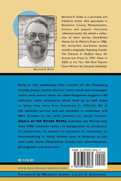 Hopalong Cassidy starred legendary actor William Boyd and Andy Clyde as his sidekick. Rediscover the Old Time Radio series with all the Hopalong Cassidy prose, motion pictures, comic books, and newspaper comic strip stories, as well as full details of the 104 half-hour radio adventures that hold up as well today as when they were first broadcast in 1950-1952. Features include the Mutual, and later CBS, networks series, its background, producers, performers, writers, sponsors, story lines, and merchandising in detail seldom seen. Illustrations include rare advertisements, photographs, and press kits. Foreword by Western author, Loren D. Estleman. 148 pages. Radiogram: Hopalong Cassidy of the Airwaves Rides Again in New Book Those prolific editors at BearManor Media in Albany, GA continue to dazzle OTR fans with books on such diverse and unusual subjects as comic strips on radio, the story of the series Straight Arrow, and biographies of Walter Tetley, Agnes Moorehead and Jerry Colonna, seemingly leaving no stone unturned with regard to golden age of radio. BearManor Media's latest excursion into old-time radio involves a look at one of radio's most beloved cowboys, Hopalong Cassidy. In Jingle of the Silver Spurs: The Hopalong Cassidy Radio Program, 1950-1952, author Bernard A. Drew examines, in depth, the genesis and recording of the radio drama series, which began broadcasting in 1948 and ended in 1950 after which the series went into television. The half-hour western was syndicated through Commodore Productions, and heard mostly on Mutual stations. William Boyd, who had played the silver-haired good guy who dressed in black in a series of films beginning in 1935 with Hop-A-Long Cassidy-reissued later and better known today as Hopalong Cassidy Enters-and ending in 1948 with Strange Gamble, starred in the series with Andy Clyde offered an ideal blend of rangeland crime puzzles and good humor, with Boyd's belly laugh and Clyde's braying wheeze delighting family members young and old. Drew notes that, "Hopalong Cassidy was an iconic character, particularly when Bill Boyd brought him to television in the early 1950s." He also writes that, "The radio show was a small piece of an enormous merchandising effort which included not only films and television shows but new hardcover fiction books, comic books, and every conceivable piece of merchandise a youngster could want - from trading cards to lamps to bed sheets to toy six-guns. There is still a huge Hoppy fan audience who should be curious about another aspect of their hero's career." Drew's book follows screen actor William Boyd's negotiations with Cassidy creator Clarence E. Mulford as well as Boyd's agreement with Commodore Productions. The book also includes a complete Mutual Broad-casting System press kit for the radio show, and provides a complete list of all 104 programs complete with plot description.