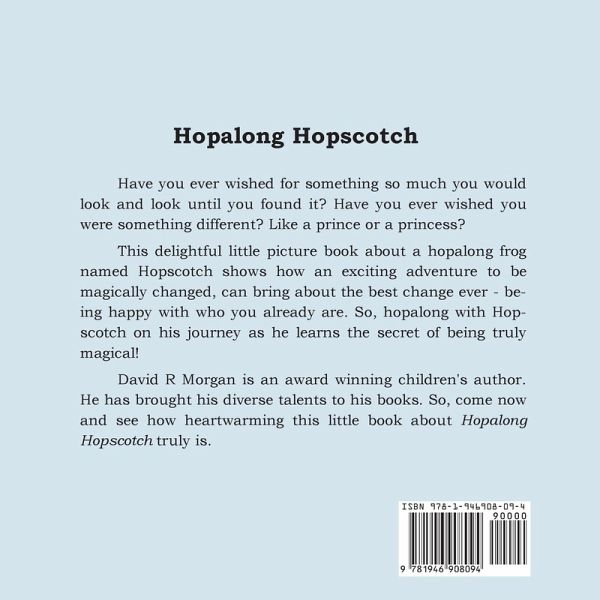 A charming 32 page children's picture book about a little frog who enjoys reading fairy tales. He especially likes reading of how if a frog kisses a princess, he becomes a frog. He tries and tries to kiss different pretty princesses without success, but learns that being a frog is just he was meant to be and he finds true love as well. David R Morgan is an award winning author and brings his diverse talents to this charming little book. Join the fun and see how the girl frog gets the boy frog!
