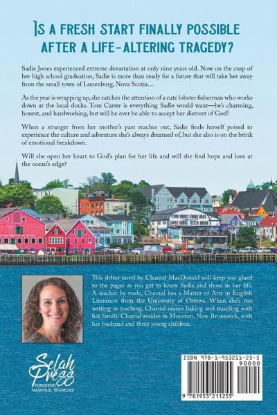 Is a Fresh Start Finally Possible After a Life-altering Tragedy? Sadie Jones experienced extreme devastation at only nine years old. Now on the cusp of her high school graduation, Sadie is more than ready for a future that will take her away from the small town of Lunenburg, Nova Scotia... As the year is wrapping up, she catches the attention of a cute lobster fisherman who works down at the local docks. Tom Carter is everything Sadie would want-he's charming, honest, and hardworking, but will he ever be able to accept her distrust of God? When a stranger from her mother's past reaches out, Sadie finds herself poised to experience the culture and adventure she's always dreamed of, but she also is on the brink of emotional breakdown. Will she open her heart to God's plan for her life and will she find hope and love at the ocean's edge?
