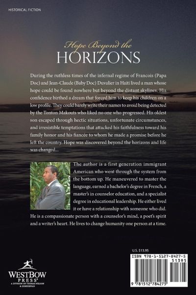 During the ruthless times of the infernal regime of Francois (Papa Doc) and Jean-Claude (Baby Doc) Duvalier in Haiti lived a man whose hope could be found nowhere but beyond the distant skylines. His confidence birthed a dream that forced him to keep his children on a low profile. They could barely write their names to avoid being detected by the Tonton Makouts who liked no one who progressed. His oldest son escaped through hectic situations, unfortunate circumstances, and irresistible temptations that attacked his faithfulness toward his family honor and his fiancée to whom he made a promise before he left the country. Hope was discovered beyond the horizons and life was changed...