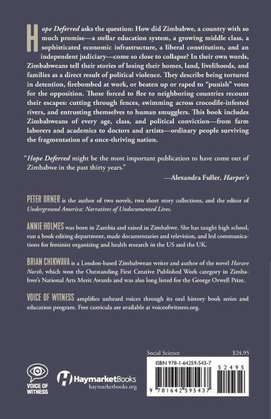 This book presents the narratives of Zimbabweans whose lives have been affected by the countryâ s political, economic, and human rights crises. This book asks the question: How did a country with so much promiseâ a stellar education system, a growing middle class of professionals, a sophisticated economic infrastructure, a liberal constitution, and an independent judiciaryâ go so wrong?