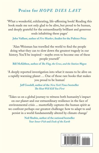 'One of the most exciting books I've ever read'- Louise Erdrich In this profoundly human and moving narrative, the bestselling author of The World Without Us returns with a book ten years in the making: a study of the precarious state of our planet and what it means to be a human on the front lines of this existential crisis. His new uplifting book, Hope Dies Last, is a literary evocation of our current predicament and the core optimism of the human species against the worst odds we have ever faced. To write this book, Weisman has travelled the globe witnessing the devastation of climate change and meeting the people striving to mitigate and undo our past transgressions. From the flooding Marshall Islands to wetlands renewal in Iraq, and from the Netherlands to the Korean DMZ to cities and coastlines around the world, he has witnessed personally the best of humanity battling the heat, the hunger, and the rising tides. He profiles the work of big thinkers-engineers, scientists, economists, and psychiatrists-as they devise innovative and wildly creative responses to an uncertain and frightening future. We are at an unprecedented point in history, as our collective exploits on this planet are leading us to our own undoing, and we could be one of the species marching toward extinction. A remedy to climate anxiety by one of our most important voices on humans' relationship with the Earth, Hope Dies Last fills a crucial gap in the global conversation: Now that we have passed the point of no return in our battle against climate change, how do we feel, behave, act, plan, and dream as we approach a future decidedly different from what we had expected?