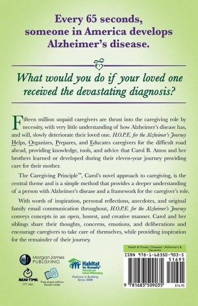 H.O.P.E for the Alzheimer's Journey provides hope in a handbook for a less stressful and more rewarding caregiver's Alzheimer's Journey.