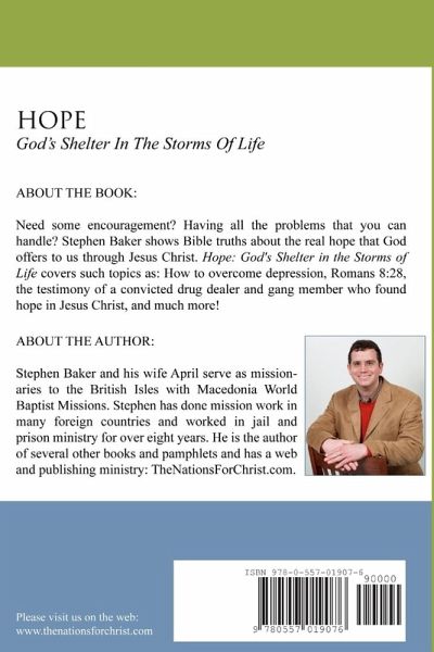 Need some encouragement? Having all the problems that you can handle? Stephen Baker shows Bible truths about the real hope that God offers to us through Jesus Christ. Covers topics such as: how to overcome depression, the purpose of life, the testimony of a convicted drug dealer and gang member who found hope in Jesus Christ, and much more!