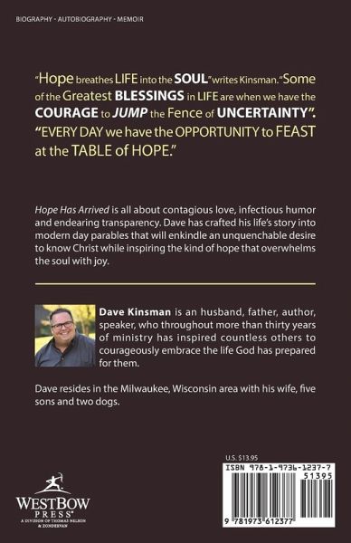 Hope Has Arrived is all about contagious love, infectious humor and endearing transparency. Dave has crafted his lifes story into modern day parables that will enkindle an unquenchable desire to know Christ while inspiring the kind of hope that overwhelms the soul with joy.