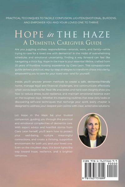 Struggling to keep your head above water? If you're a caregiver who wakes up early, heart heavy with worry and mind racing with endless tasks, you're not alone. For many juggling work, family, and the relentless demands of caring for a loved one with dementia, life can feel overwhelming. Hope in the Haze: A Dementia Caregiver's Guide is here to light your path through the fog. Free Bonus Included: A Downloadable Daily/Weekly/Monthly Checklist to Keep Your Caregiving Organized and Proactive I'm Clara Leon. 25+ years as a nurse caring for dementia patients have shown me both the heartbreaking and the hopeful sides of this journey. I've seen the tears of a daughter who feels she's losing her parent piece by piece, and I've witnessed quiet moments of connection that remind us why we keep going. This guide is a culmination of those experiences-offering clear, actionable solutions for the challenges you face every day. Does any of this sound familiar? Emotional Overload: The constant worry, the unyielding stress, and the pain of watching cherished memories fade. Isolation: Feeling like you're the only one burdened by this responsibility, with no one to lean on. Behavioral Challenges: The unpredictable mood swings, aggressive outbursts, and communication breakdowns that leave you feeling lost. Multiple Responsibilities: Balancing your job, family, and caregiving duties with little time for yourself. Financial & Legal Worries: The daunting task of handling medical bills, insurance hassles, and complex legal documents. Hope in the Haze cuts through the chaos with practical strategies you can implement right away. Imagine transforming your days with structured routines that safeguard both your loved one's well-being and your own sanity. Learn how to create a secure, dementia-friendly home, master communication techniques that honor their dignity, and manage the legal and financial intricacies that come with this journey. What can you expect from this guide? Clarity Amid Chaos: Proven methods to cut through confusion and manage everyday challenges with confidence. Emotional Resilience: Techniques to ease stress, bridge isolation, and empower you to care for both your loved one and yourself. Legal & Financial Peace: Step-by-step guidance on critical tasks like setting up a Power of Attorney and planning for long-term care.
