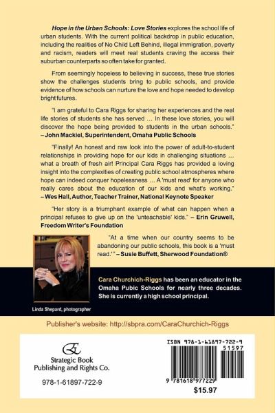Hope in the Urban Schools: Love Stories explores the school life of urban students. With the current political backdrop in public education, including the realities of No Child Left Behind, illegal immigration, poverty and racism, readers will meet real students craving the access their suburban counterparts so often take for granted.From seemingly hopeless to believing in success, these true stories show the challenges students bring to public schools, and provide evidence of how schools can nurture the love and hope needed to develop bright futures. "I am grateful to Cara Riggs for sharing her experiences and the real life stories of students she has served ... In these love stories, you will discover the hope being provided to students in the urban schools." - John Mackiel, Superintendent, Omaha Public Schools "Finally! An honest and raw look into the power of adult-to-student relationships in providing hope for our kids in challenging situations ... what a breath of fresh air! Principal Cara Riggs has provided a loving insight into the complexities of creating public school atmospheres where hope can indeed conquer hopelessness ... A 'must read' for anyone who really cares about the education of our kids and what's working." - Wes Hall, Author, Teacher Trainer, National Keynote Speaker "Her story is a triumphant example of what can happen when a principal refuses to give up on the 'unteachable' kids." - Erin Gruwell, Freedom Writer's Foundation "At a time when our country seems to be abandoning our public schools, this book is a 'must read.' " - Susie Buffett, Sherwood Foundation Cara Churchich-Riggs has been an educator in the Omaha Pubic Schools for nearly three decades. She is currently a high school principal.