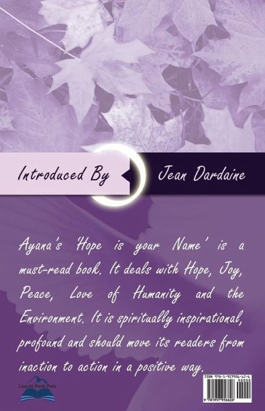 Ayana's 'Hope is your Name' is a must-read book. It deals with Hope, Joy, Peace, Love of Humanity and the Environment. It is spiritually inspirational, profound and should move its readers from inaction to action in a positive way.