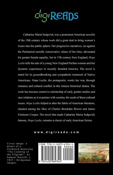 Catharine Maria Sedgwick was a prominent American novelist of the 19th century whose work did a great deal to bring women’s issues into the public sphere. Her progressive narratives, set against the Puritanical morally conservative values of her time, advocated for greater female equality. Set in 17th century New England, "Hope Leslie" tells the tale of a young New England Puritan woman and her dynamic experiences in recently founded America. The novel is noted for its groundbreaking and sympathetic treatment of Native Americans. Hope Leslie, the protagonist, works her way through romance and cultural conflict in this intense historical drama. The work has become central to scholarship of early gender studies and race relations as it examines with scrutiny the seeds of these cultural issues. "Hope Leslie" helped to alter the fabric of American literature, situated among the likes of Charles Brockden Brown and James Fenimore Cooper. The novel that made Catharine Maria Sedgwick famous, "Hope Leslie", remains a classic of early American fiction. This edition is printed in premium acid-free paper.