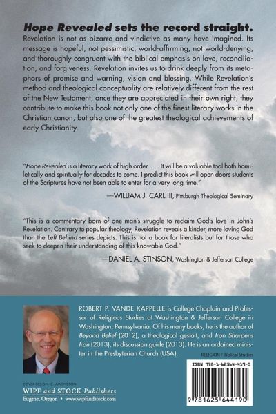 Hope Revealed sets the record straight. Revelation is not as bizarre and vindictive as many have imagined. Its message is hopeful, not pessimistic, world-affirming, not world-denying, and thoroughly congruent with the biblical emphasis on love, reconciliation, and forgiveness. Revelation invites us to drink deeply from its metaphors of promise and warning, vision and blessing. While Revelation's method and theological conceptuality are relatively different from the rest of the New Testament, once they are appreciated in their own right, they contribute to make this book not only one of the finest literary works in the Christian canon, but also one of the greatest theological achievements of early Christianity.