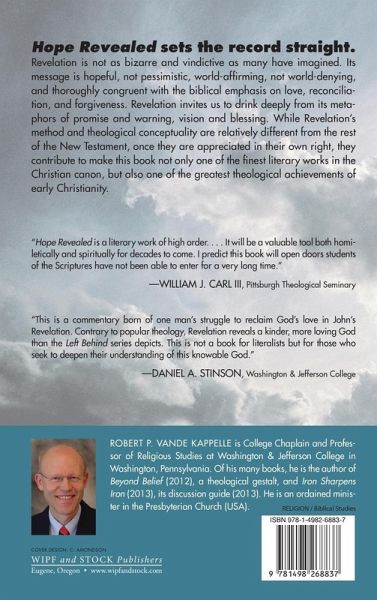Hope Revealed sets the record straight. Revelation is not as bizarre and vindictive as many have imagined. Its message is hopeful, not pessimistic, world-affirming, not world-denying, and thoroughly congruent with the biblical emphasis on love, reconciliation, and forgiveness. Revelation invites us to drink deeply from its metaphors of promise and warning, vision and blessing. While Revelation's method and theological conceptuality are relatively different from the rest of the New Testament, once they are appreciated in their own right, they contribute to make this book not only one of the finest literary works in the Christian canon, but also one of the greatest theological achievements of early Christianity.