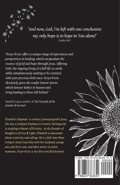 'Hope Rises offers a unique range of experiences and perspectives in healing, which encapsulate the essence of grief and hope through Jesus. Offering both, the ongoing living of a full life on earth, while simultaneously waiting to be reunited with your precious little ones. Hope Rises absolutely gives the reader honest stories which honour babies in heaven and bring healing to those left behind.' - Raechel Joyce