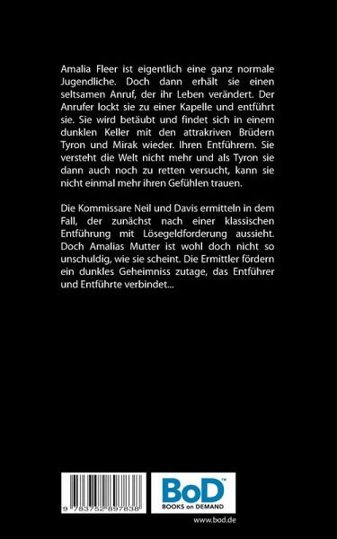 Amalia Fleer ist eigentlich eine ganz normale Jugendliche. Doch dann erhält sie einen seltsamen Anruf, der ihr Leben verändert. Der Anrufer lockt sie zu einer Kapelle und entführt sie. Sie wird betäubt und findet sich in einem dunklen Keller mit den attraktiven Brüdern Tyron und Mirak wieder. Ihren Entführern. Sie versteht die Welt nicht mehr und als Tyron sie dann auch noch zu retten versucht, kann sie nicht einmal mehr ihren Gefühlen trauen. Die Kommissare Neil und Davis ermitteln in dem Fall, der zunächst nach einer klassischen Entführung mit Lösegeldforderung aussieht. Doch Amalias Mutter ist wohl doch nicht so unschuldig, wie sie scheint. Die Ermittler fördern ein dunkles Geheimniss zutage, das Entführer und Entführte verbindet...
