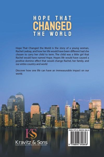 Hope That Changed the World is the story of a young woman, Rachel Leebay, and how her life would have been different had she chosen to carry her child to term. The child was a little girl that Rachel would have named Hope. Hope's life would have caused a positive domino effect that would change Rachel, her family, and our entire country and world. Discover how one life can have an immeasurable impact on our world.