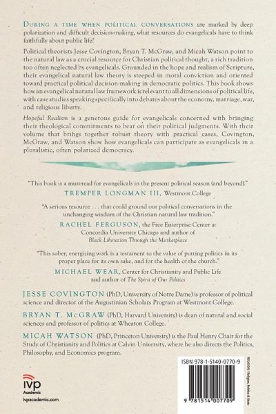 Micah Watson (PhD, Princeton University) is the Paul Henry Chair for the Study of Christianity and Politics at Calvin University, where he also directs the politics, philosophy, and economics program. Jesse Covington (PhD, Notre Dame) is professor of political science and director of the Augustinian Scholars honors program at Westmont College in Santa Barbara, California. He teaches and writes in the fields of political theory, political theology, and constitutional law, with particular interest in the interrelation of religion and government. Bryan T. McGraw (PhD, Harvard University) is dean of social sciences and education and associate professor of politics at Wheaton College, where he also directs the Aequitas Fellows Program. He is the author of Faith in Politics and has published articles on pluralism, liberal democratic political thought, and the place of religion in public life.
