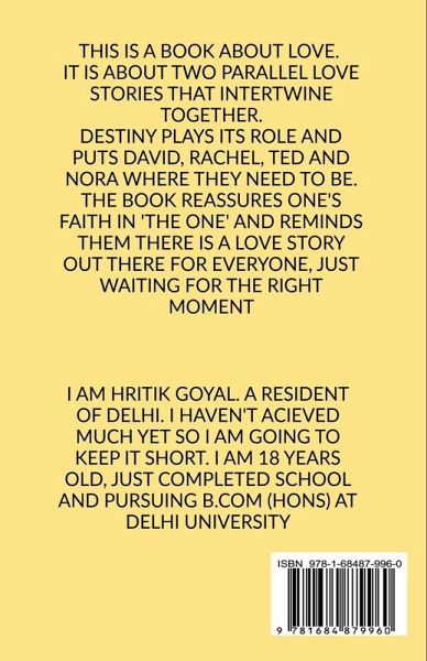 The book is about two parallel love stories which intertwine together. David is a hopeless romantic but an introvert. He feels attracted to Rachel from the moment he sees her but his disbelief in love at first sight doesn't let him confuse this attraction with love. He is too shy to even approach her but destiny plays its role and she herself approaches him. They get to know each other and become friends. They start spending every moment together and David